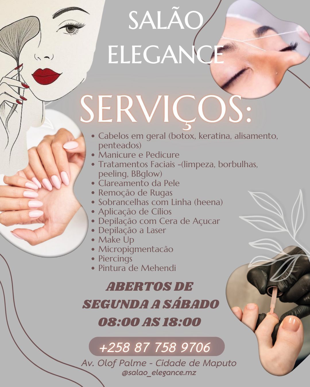 Located in the heart of Maputo, Salao Elegence is your destination for beauty, confidence, and relaxation. Our experienced professionals are dedicated to delivering high-quality services in a comfortable and luxurious environment.